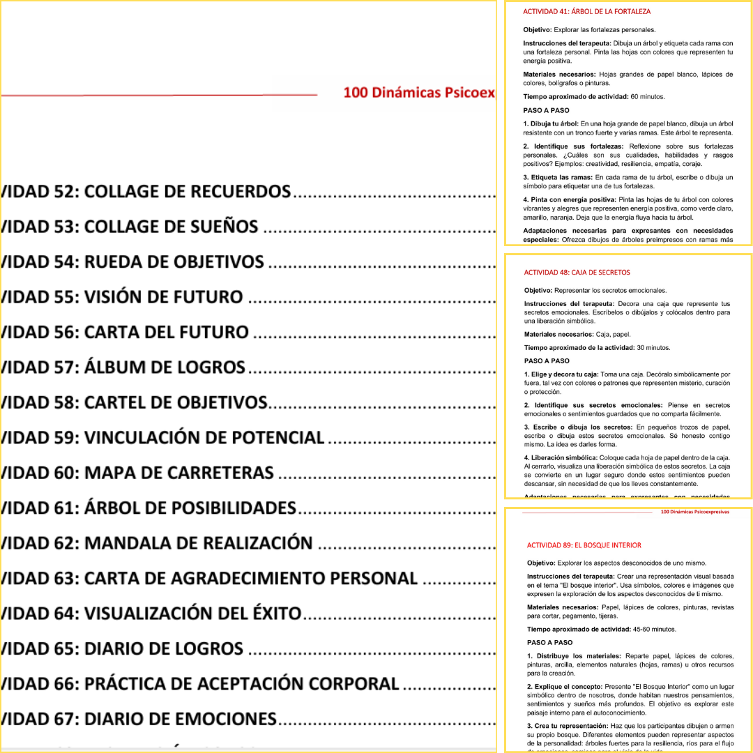 En el Ebook » 100 Dinámicas Psicoexpresivas para el Bienestar Emocional.» encontrarás: